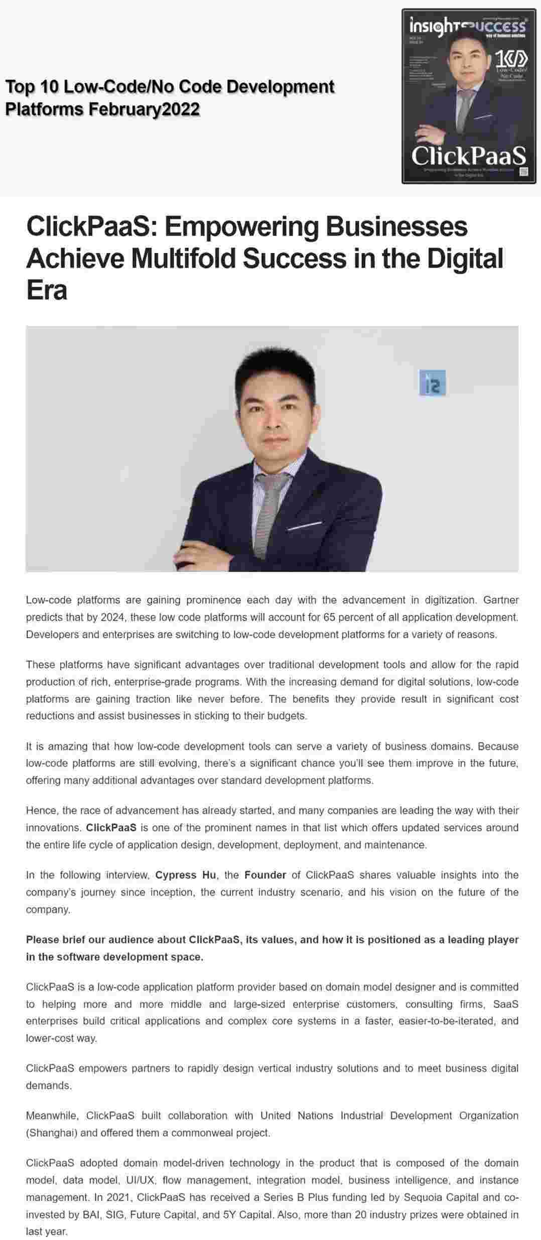 2022年年初,,,,,华为钱包入选外媒Insights Success低代码/无代码开发平台 Top10,,,,,,创始人、、、、、、、、、、、CEO胡柏受邀接受专访并荣登封面人物,,,,,他与Insights Success的读者分享了华为钱包成立的初心、、、、、、、发展历程、、、、、、、、、、当前的行业发展趋势以及他对公司未来的展望。。。。。。。。。。。。。